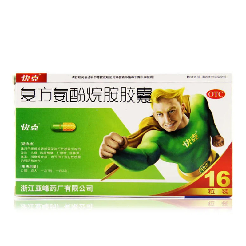 鸿康[快克]复方氨酚烷胺胶囊8粒2板盒